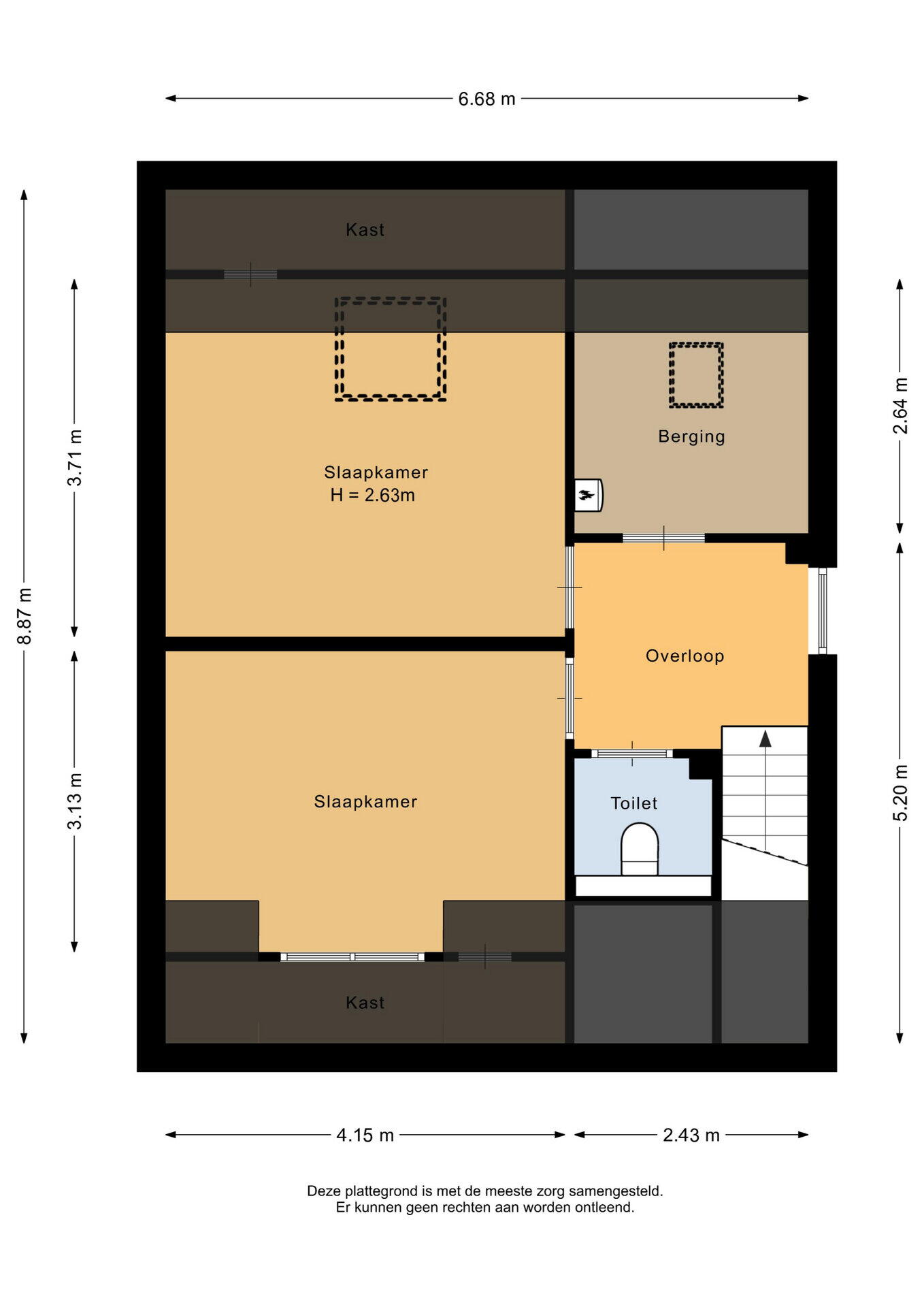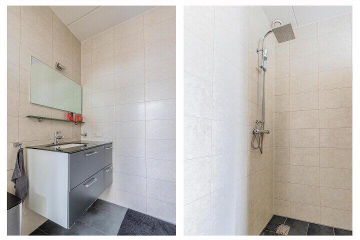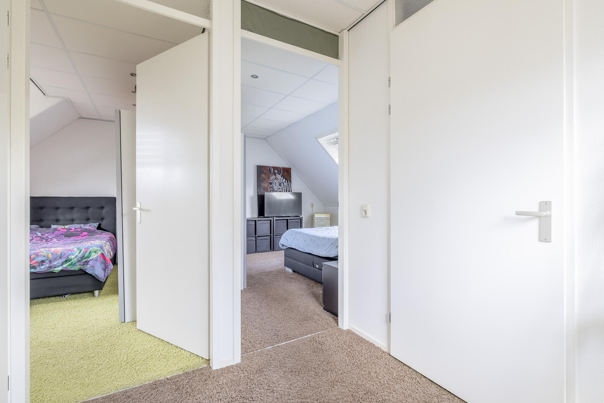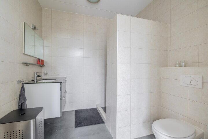 Via een houten trap kom je op de overloop met raam, apart toilet en 2 ruime slaapkamers waarvan 1 met een dakkapel (voorzijde) en de ander, aan de achterzijde, met een groot Velux dakraam. Achter de netjes afgewerkte schuine wanden is extra bergruimte handig via een een luik bereikbaar. Verder vind je hier nog een berging met de CV opstelling, mechanische ventilatie, zonnepanelen-omvormer. Extra kamer nodig? Op deze verdieping ligt vloerbedekking.